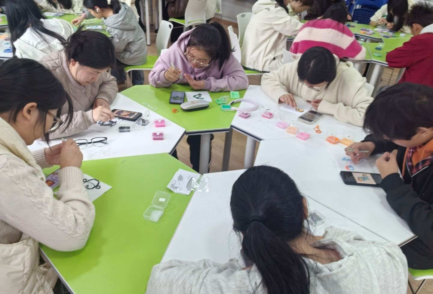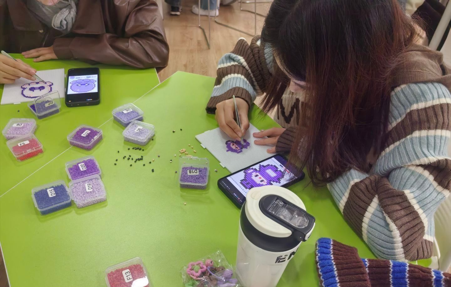活动现场暖意融融,各类创作材料整齐摆放——五彩斑斓的72色拼豆、风格多样的图案模板、操作便捷的熨斗与镊子等工具一应俱全,为同学们的创意发挥提供了充足保障。活动中,同学们既可以参照模板细心排列拼豆,勾勒经典图案;也可以挣脱束缚自由畅想,将奇思妙想融入指尖,用彩色拼豆组合出萌趣动物、热血动漫角色、个性字母、校园风景等各式作品,让想象力在方寸之间尽情绽放。