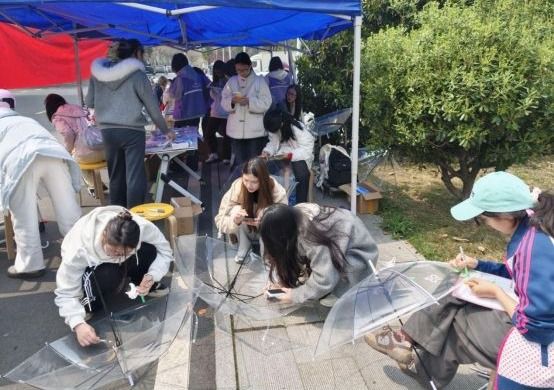 本次活动设置三大特色体验区域,为同学们打造了一场兼具趣味性与实用性的心理疗愈之旅。在DIY雨伞创意手作区,透明雨伞、丙烯马克笔、仿真花、装饰珠串等手工材料整齐摆放,同学们发挥想象力、亲手创作,在动手过程中放空大脑、缓解学业与生活压力,完成的作品可自行带走留作纪念,让这份治愈与美好留存日常。