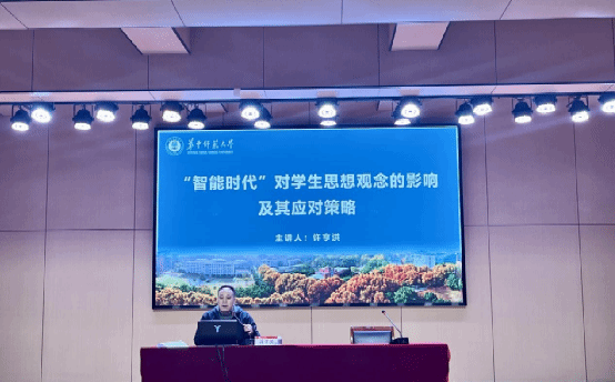 华中师范大学党委学生工作部思政处辅导员发展办主任许亨洪教授结合自身工作实际,以《智能时代对学生思想观念的影响及其应对策略》为题作专题分享,深入剖析了智能时代背景下学生思想观念呈现的新特点、新趋势,针对这一现状,他强调高校辅导员需以“数字素养”为基础、“数字思政育人能力”为核心,通过“信息服务精准化、数字思政具象化、智慧思政场景化”的实践路径,将思想引导转化为可操作、可感知的育人行动,切实筑牢智能时代立德树人的思想根基。