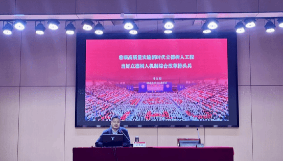 教育部高校思想政治工作创新发展中心(武汉大学)副主任、武汉大学党委宣传部副部长司文超老师以《着眼高质量实施新时代立德树人工程 当好立德树人机制综合改革排头兵》为题作专题分享。他强调,要深入学习贯彻习近平总书记关于立德树人的重要论述,学深悟透新思想新观点新论断,立足新时代方位、把握新阶段特征、强化新举措力度,树立系统观念、归零心态、集成思维,发扬敢为人先的精神,不断增强思政引领力,落实好新时代立德树人工程及立德树人机制综合改革的各项任务。